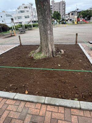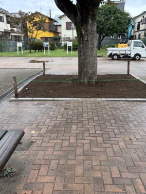 6月に要望があった、滝の作向台公園の樹木等、どうなっているか行ってみましたら、ちょうど工事を行っていました。