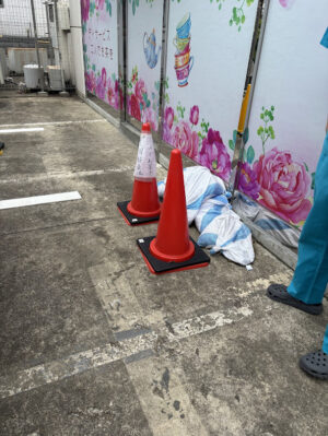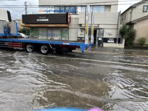 土嚢を用意したが、デイサービスの入り口まで水が溜まった。