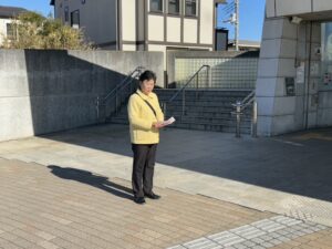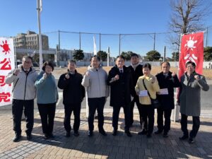 1月12日(月・祝)10時15分より、東葉高速線・船橋日大前で、角田ひでお衆議院議員、仲村ひであき県議会議員そして私たち市議会議員で、成人の日街頭を行いました。